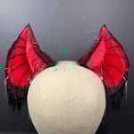 These red and black bat ears are perfect for any outfit, cosplay, or Halloween costume! These include jewelry and a chain for a cool funky look.